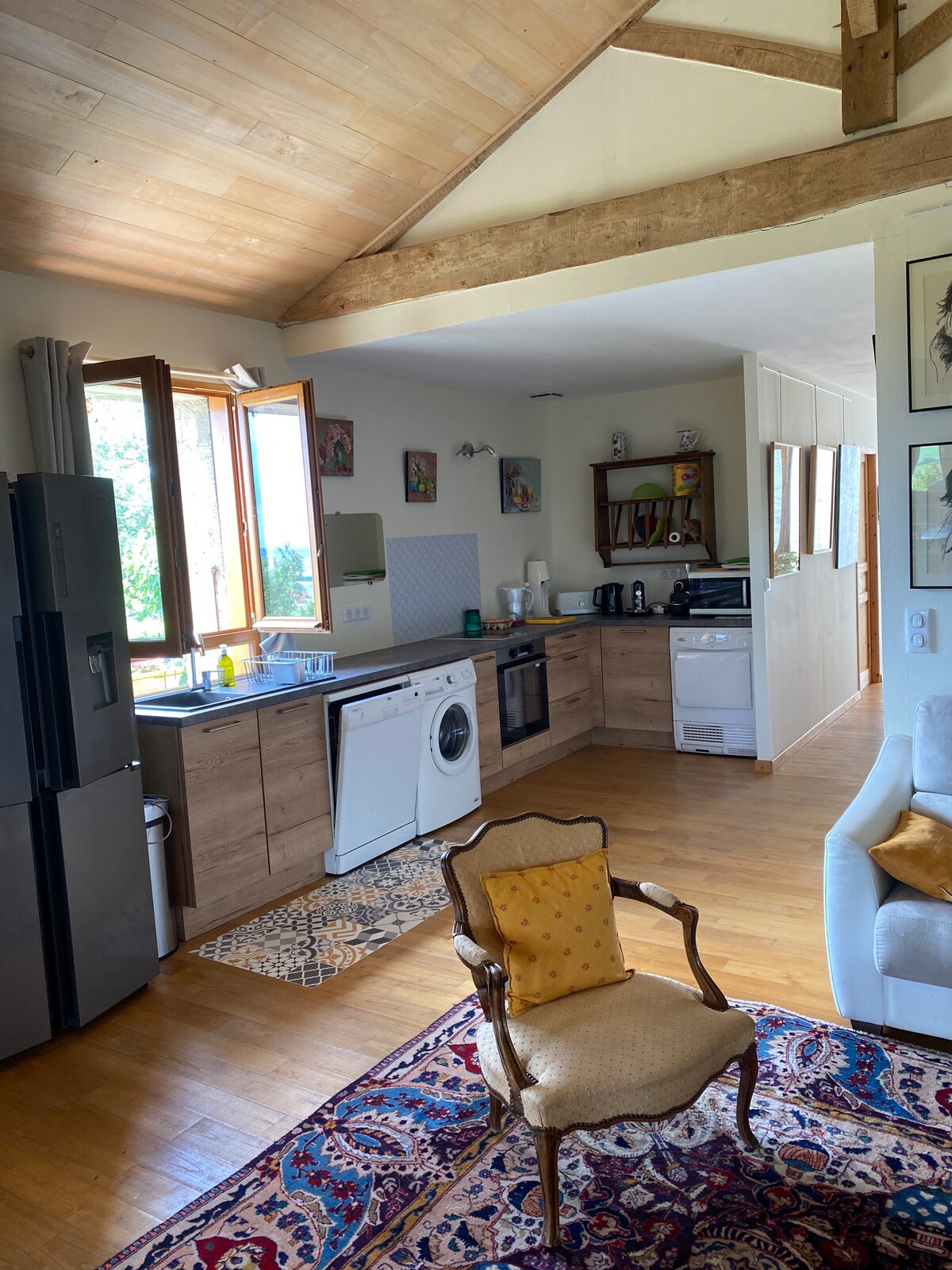 Este alojamiento está situado en una casa de madera con entrada independiente, construida en un estilo moderno. Es una oportunidad única para pasar tiempo en una auténtica casa finlandesa. La casa está situada en una zona tranquila y arbolada, a 3 minutos en coche del centro del pueblo, que data del siglo XIII y está clasificado como uno de los pueblos más bellos de Francia. Es posible reservar un desayuno o una cena con la dueña de la casa (chef profesional).