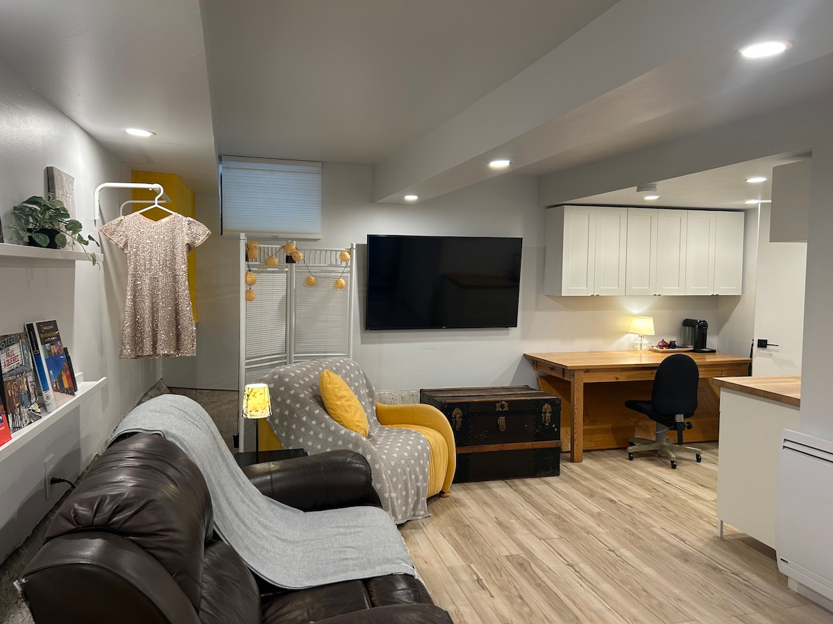 Venga a disfrutar de una suite tranquila en un entorno encantador, solo, en pareja o con su pequeña familia. Ya sea para teletrabajar o para disfrutar de los alrededores. A 2 minutos del Parque del Mont Bélair ⛷️🚶🏻(gratuito), a 5 minutos de los restaurantes, a 12 minutos del aeropuerto✈️, a 20 minutos del Village Vacance Valcartier 🏝️☃️ y a 25 minutos de Quebec 🌆 Viva también una experiencia termal en la sauna panorámica y disfrute de la gran terraza protegida de la intemperie para un pequeño descanso al aire libre.