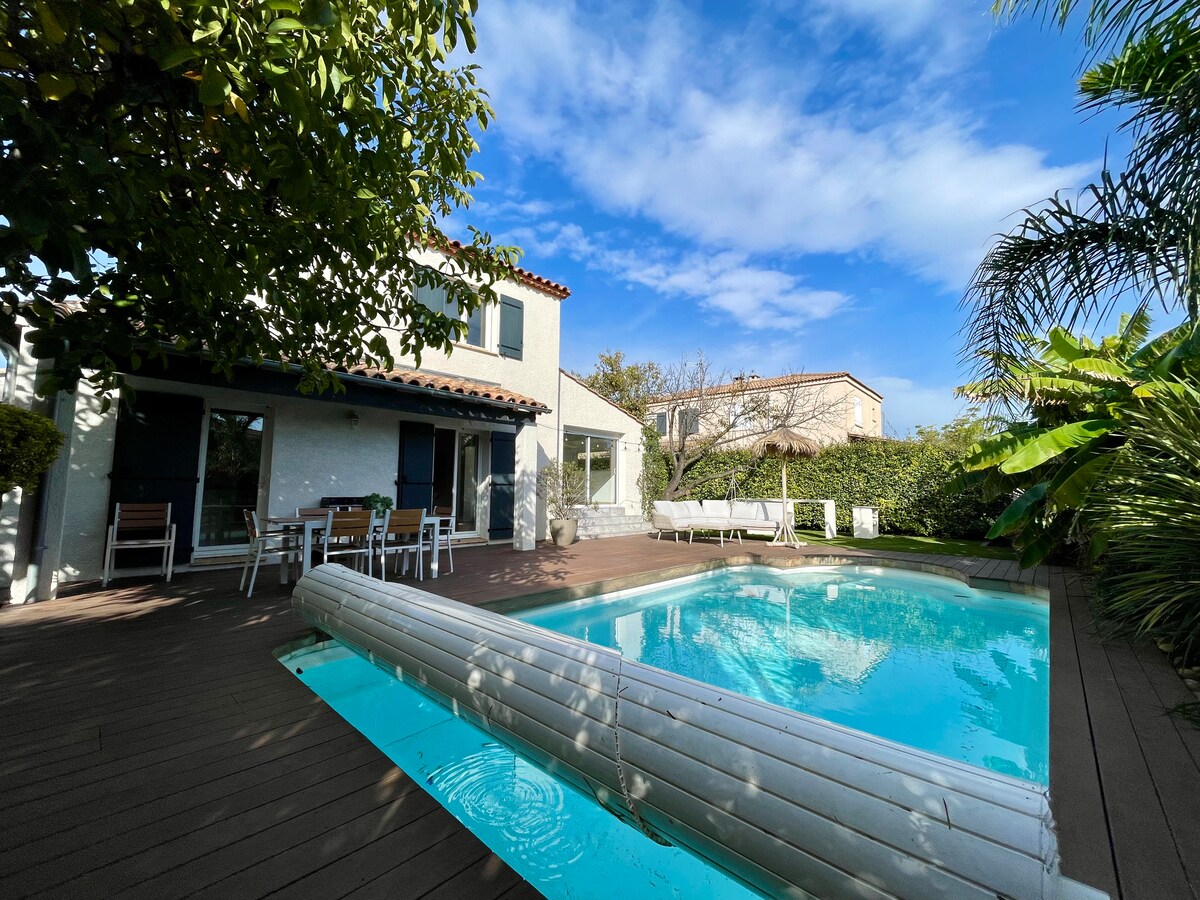 Elegancia y relajación en la puerta de entrada a Montpellier 🌴 Descubre esta elegante villa contemporánea, perfecta para una escapada entre la ciudad, el mar y la naturaleza. ✨ Piscina privada ☀️ Amplia terraza de madera con comedor al aire libre 🛋️ Sala de estar y cocina totalmente equipadas 🚗 Estacionamiento privado Escondido a solo 10 minutos de Montpellier, a 20 minutos de la playa y el aeropuerto, y a 30 minutos de la Camarga salvaje. ¡El equilibrio perfecto entre comodidad, serenidad y encanto sureño!