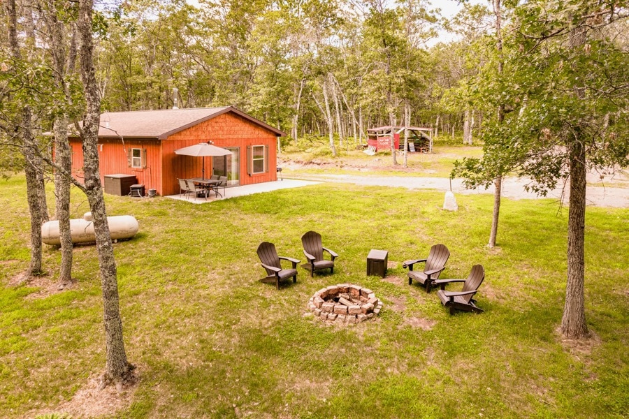 Nueva casa de 520 pies cuadrados 'no demasiado pequeña' en 20 acres de tierra salvaje. Diversión todo el año. Se admiten perros. Enchufe para autocaravanas y vehículos eléctricos. Fogata. Tus senderos de Snowshoe Creek y Little Wood Lake. Canoa, kayak y barca de pedales gratis. Barco mini-pontón 40 USD/día. Pesca. Internet. Wifi. Aire acondicionado. Chimenea de gas. Duerme por número. Baño encantador. Cocina de gas nueva. Máquina de hielo. 2 televisores. 3 ciudades + Burnett Dairy/Bistro, 4 campos de golf, DQ para comer bien, minigolf, antigüedades, multiteatro, playa Siren y «Music in Park». ¡Vida silvestre! Volverás.