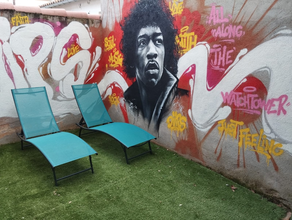 En una villa de los años 30, F2 con vistas a la parte posterior de la casa frente al jardín, el apartamento le ofrece todas las comodidades y tranquilidad en el corazón del centro de la ciudad de Perpiñán. Estación de tren SALVADOR DALI a 15 minutos a pie, Palacio de los Reyes de MALLORCA a 5 minutos, parada de autobús en la esquina de la calle, aparcamiento frente a la casa, zona residencial. Comercios de proximidad a dos pasos . Terraza de 50 m2 para los huéspedes con barbacoa. Aire acondicionado. La ropa de cama se lava y desinfecta con vapor.