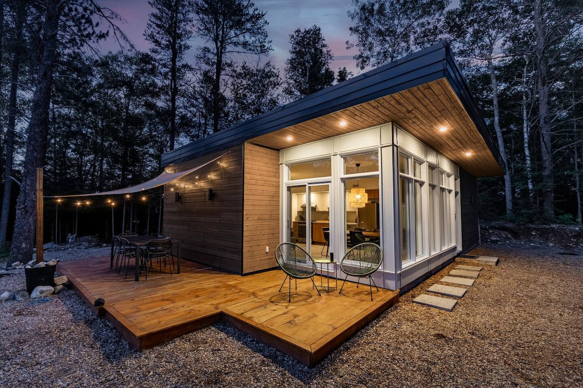 Apprécier l’ambiance chaleureuse de ce petit nid douillet et coquet, en plein cœur d’une forêt de conifères. Venez profiter des paysages montagneux enneigés. Dans notre mini-maison de 280pied2 vous y ressentirez la tranquillité et l’intimité Accès à des sentiers pédestres et à une rivière sur le domaine. 2paddles inclus 2vélos de montagne inclus 5 min des sentiers de ski-doo et 4 roues 5 min des commerces 5min des sentiers de la Nature d’Alexis 5min du pit de sable 15 min du lac Sacacomie