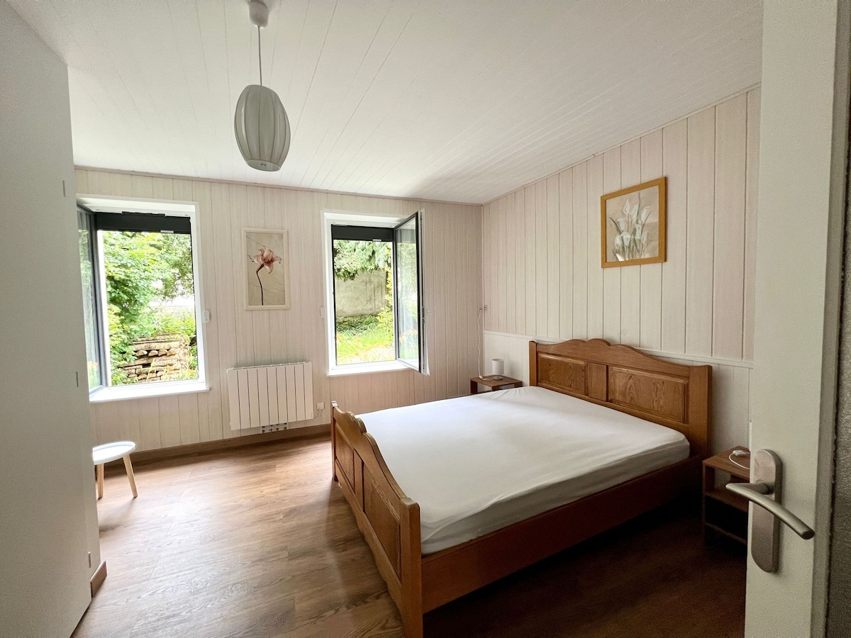 Bonita casa con un interior tipo chalet de madera. Bonito espacio habitable con zona de lectura bajo los tejados y una gran sala de estar con chimenea. Ubicación muy luminosa al final de una calle sin salida muy tranquila. el pueblo de Manson está en el corazón de la Chaîne des Puys, recientemente clasificada como Patrimonio de la Humanidad por la UNESCO. Estará en el campo y a 15 minutos del centro de Clermont-Ferrand. Precio todo incluido (limpieza y ropa de cama).