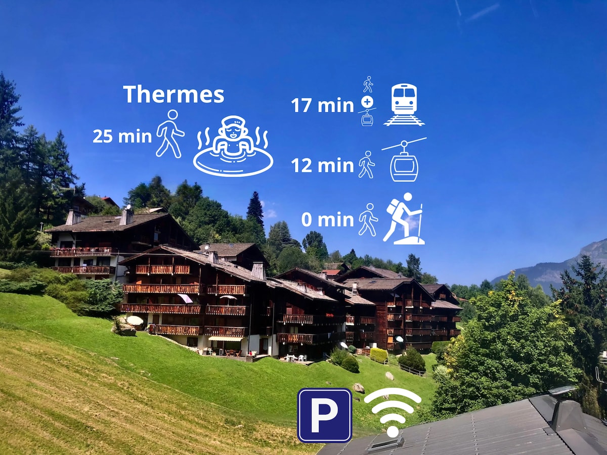 ¡Todo a pie: el pueblo, el telecabina, las termas y la estación de tren!