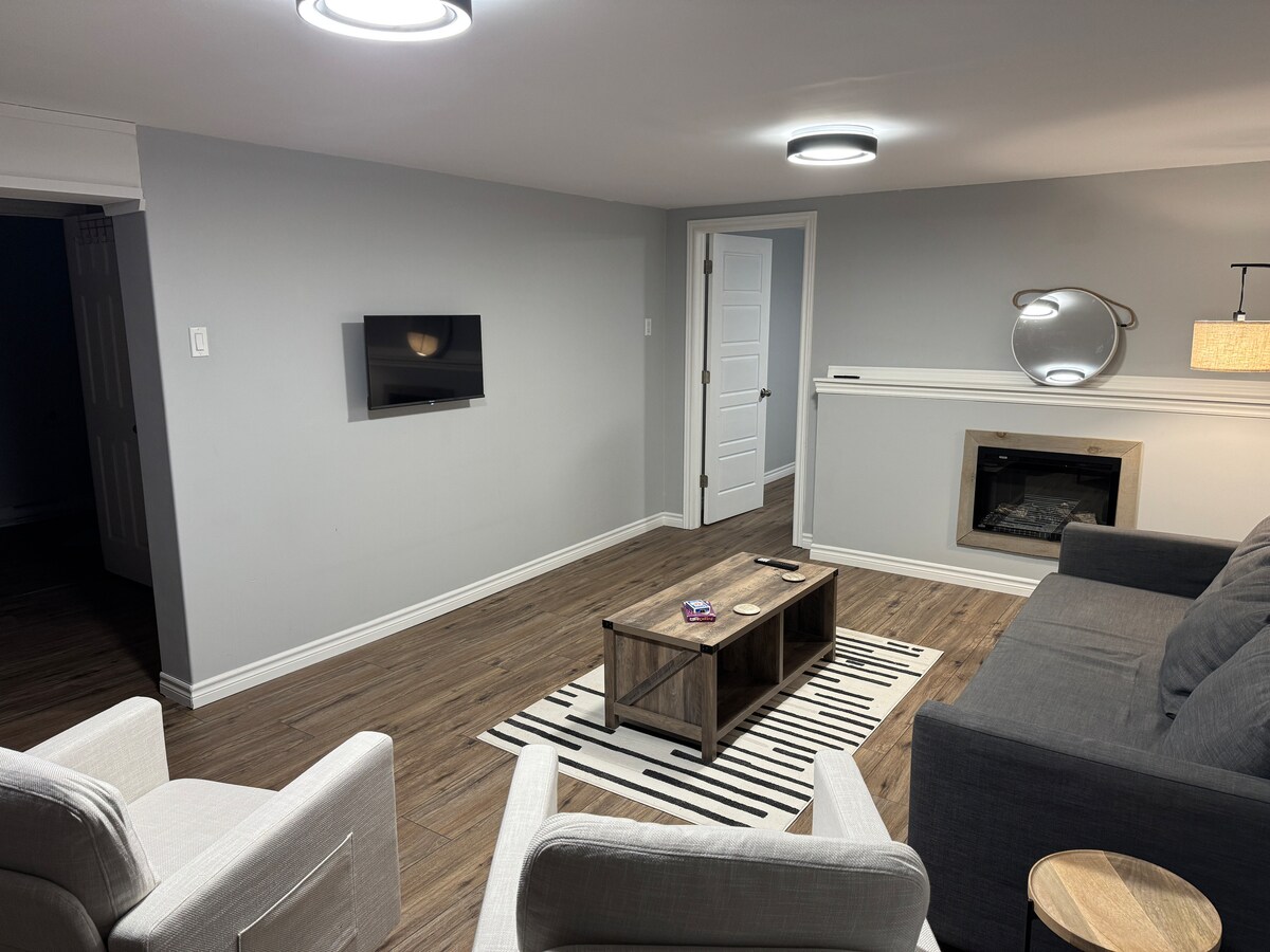 ***Please note taxes are included in the nightly rate*** This spacious, cozy and contemporary styled suite is conveniently located in a great central location to explore the Fundy Coast as well as historic uptown Saint John. This is a place for everyone to stretch out and relax by the smart flat screen TV, indoor propane fireplace or by the outdoor fire pit in Adirondack chairs overlooking a scenic view of rolling hills and a small pocket of the St John River.