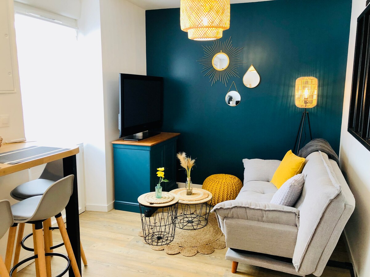 Para un fin de semana, para unos días de vacaciones o para una semana de viaje de negocios, venga a descansar en este bonito estudio nuevo de 25 m2 totalmente equipado. Construido en la planta baja de una casa al estilo de Nantes, este estudio tiene todo lo necesario para pasar unos días tranquilos gracias a su reciente aislamiento de calidad El alojamiento está semienterrado en el lado del jardín (ventana del dormitorio) y en la planta baja en el lado de la calle (puerta de vidrio grande) aparcamiento gratuito en la calle Smart tv Wifi