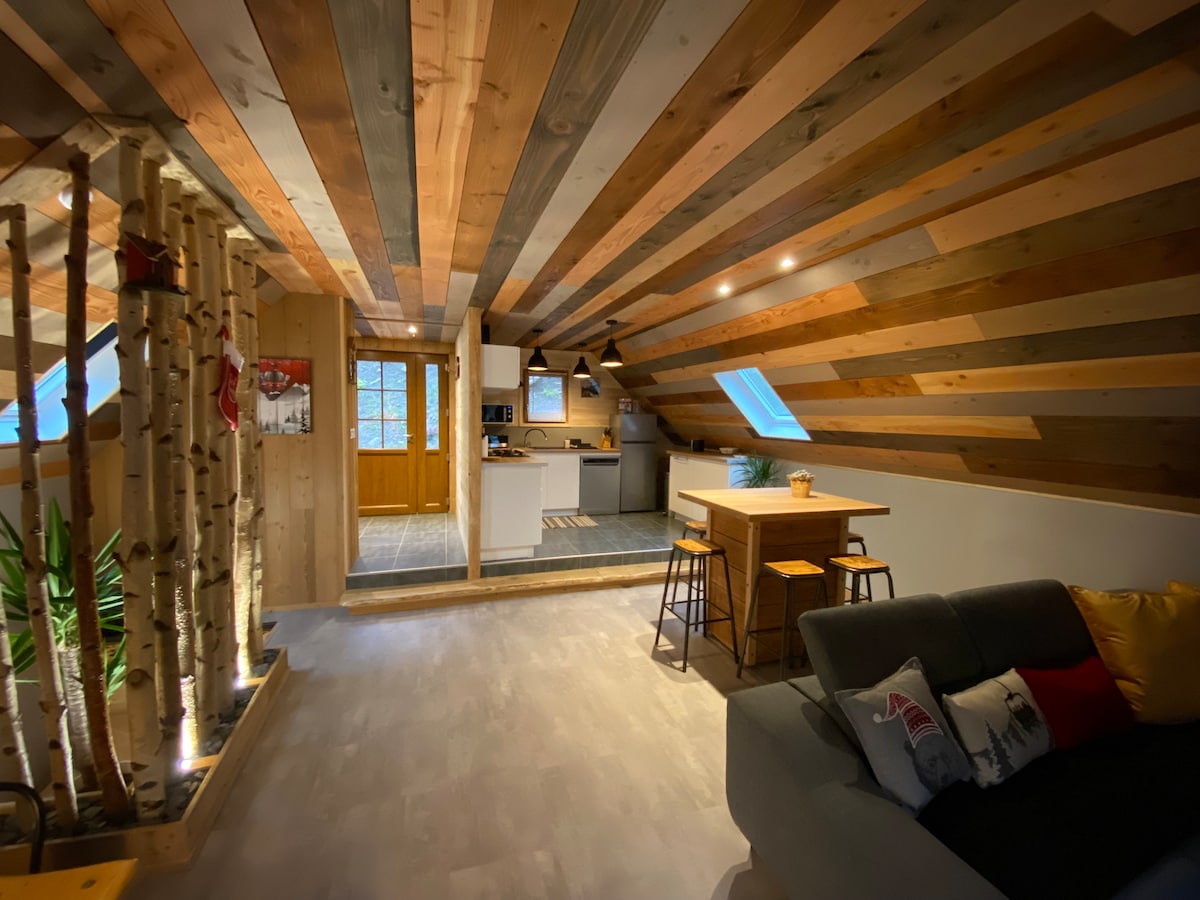 A 1 km de Luchon, en el corazón del pequeño pueblo pastoril de Montauban-de-Luchon, Granero de 76 m2 renovado «espíritu de montaña» todo de madera, con sala de estar de 35 m2 abierta al castaño centenario y las montañas de Superbagnères. Dos dormitorios, un baño, un aseo independiente, un pequeño jardín privado, muy cómodo y lleno de encanto para unas estupendas vacaciones en la montaña muy cerca de las estaciones de esquí, la frontera española y las caminatas más bellas del macizo pirenaico.