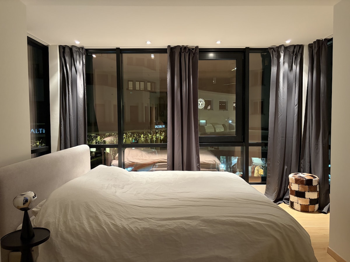 Luminoso y encantador apartamento de 2 habitaciones para 2 adultos, con una amplia terraza con vistas al lago y las montañas (70 metros cuadrados en total) en el centro de Sankt Moritz Dorf. A 300 metros tanto del telesilla Corviglia como del lago. La zona es verde y tranquila. El apartamento, solo para uso de los huéspedes, se compone de lo siguiente: un baño, aseo, cocina bien equipada, comedor/sala de estar y terraza. Otro baño principal con ducha/bañera de hidromasaje y dormitorio doble con acceso a la terraza. Síguenos: @stmoritzairbnb