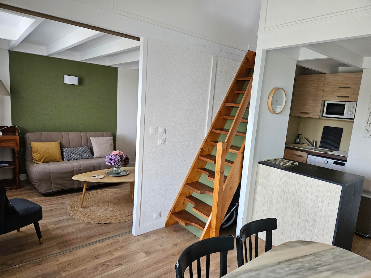 Bienvenido a Saint-Palais-sur-Mer, en esta bonita casa reformada, situada en el casco antiguo de St Palais, tranquila y familiar, a solo 500 metros de la playa de Platin y cerca de las tiendas y paseos costeros. Ideal para familia, amigos, pareja con niños. Le ofrece todas las comodidades necesarias para unas vacaciones serenas: -2 Habitaciones y baño pequeño arriba - Salón / sala de estar con zona de comedor y cocina totalmente equipada - Terraza exterior con mobiliario