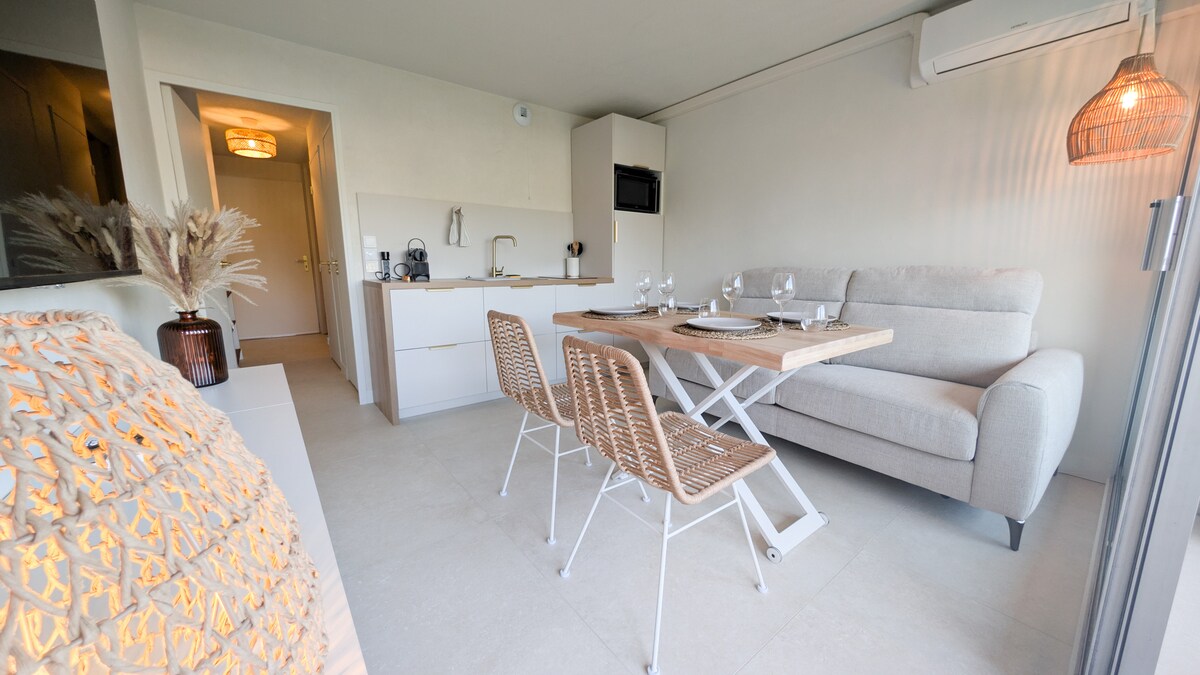 🌴Détente, quiétude, découverte…vous êtes au bon endroit…ce superbe studio offre une incroyable vue sur la mer !!! Imaginez votre réveil, le coucher de soleil… Composé de matériaux de qualité et entièrement équipé 🌵Vous pourrez profitez du paysage sauvage de l’esterel offrant de magnifiques randonnées, sans oublier la plage du Viaduc (4 min à pieds) mais aussi la calanque de Saint Barthélémy Une gare est également présente (11 min à pieds) Un séjour inoubliable, une nouvelle histoire…