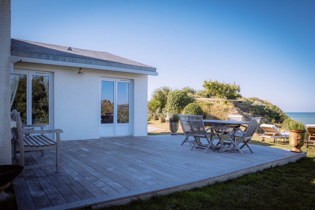 Villa contemporánea frente al mar en un pueblo tranquilo, amplias terrazas orientadas al sur, a 15 minutos a pie de Fecamp, a 15 km de Etretat. Cocina americana totalmente equipada, 3 dormitorios con camas tamaño queen, 1 baño con ducha y bañera de hidromasaje, 1 cuarto de baño con gran ducha a ras de suelo, 2 aseos, 2 salones, cada uno con su cine en casa y consolas Xbox, barbacoa, futbolín Bonzini, dardos, mesa de ping pong, billar Cornilleau al aire libre.