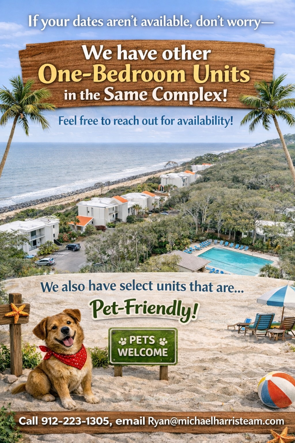 ¡Disfruta de increíbles amaneceres en el océano desde el espacioso apartamento de 1-BR Jekyll Island! Junto a una playa aislada y a poca distancia a pie de la famosa playa de Driftwood. La unidad de planta baja actualizada tiene capacidad para 4 personas (con sofá cama). El patio ampliado ofrece vistas panorámicas a la costa. El complejo de apartamentos tiene piscina, gimnasio, voleibol, baloncesto, parque infantil, alquiler de bicicletas, mesas de pícnic, restaurante y mucho más. Un perro (60 libras como máximo) está bien con una tarifa de 75 $. Lo sentimos, no hay gatos. Para estancias superiores a 7 noches, ponte en contacto con el anfitrión para obtener un descuento especial.