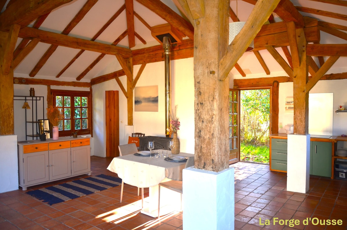 La casa de campo Chêne Couché está cerca de la Reserva Natural de Arjuzanx y su lago (3 km) y de las playas más bonitas del Atlántico Sur (Mimizan a 45 km). Disfrutará de su gran parque de 4 ha con sus corzos, su luminosidad, su comodidad (reforma totalmente nueva), la tranquilidad y serenidad del bosque de las Landas, los mercados de los alrededores. La casa es perfecta para parejas, personas que viajan solas y amigos de cuatro patas. Para dormir, puede elegir entre una cama de 160 o dos camas de 90.