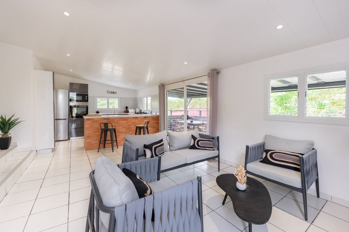 Situado cerca del pueblo de Sainte-Anne, en el sur del Caribe de Martinica, en una zona tranquila, se puede acceder fácil y rápidamente a las playas más hermosas de la isla. Breen Lodge consta de 3 alojamientos (T2, T3 y T4) el espacio de la piscina se comparte entre ellos Venga a relajarse en familia o con amigos, gracias a este elegante alojamiento con capacidad para 6 personas, y disfrute de su terraza privada. Será un placer darle la bienvenida 🌴☀️