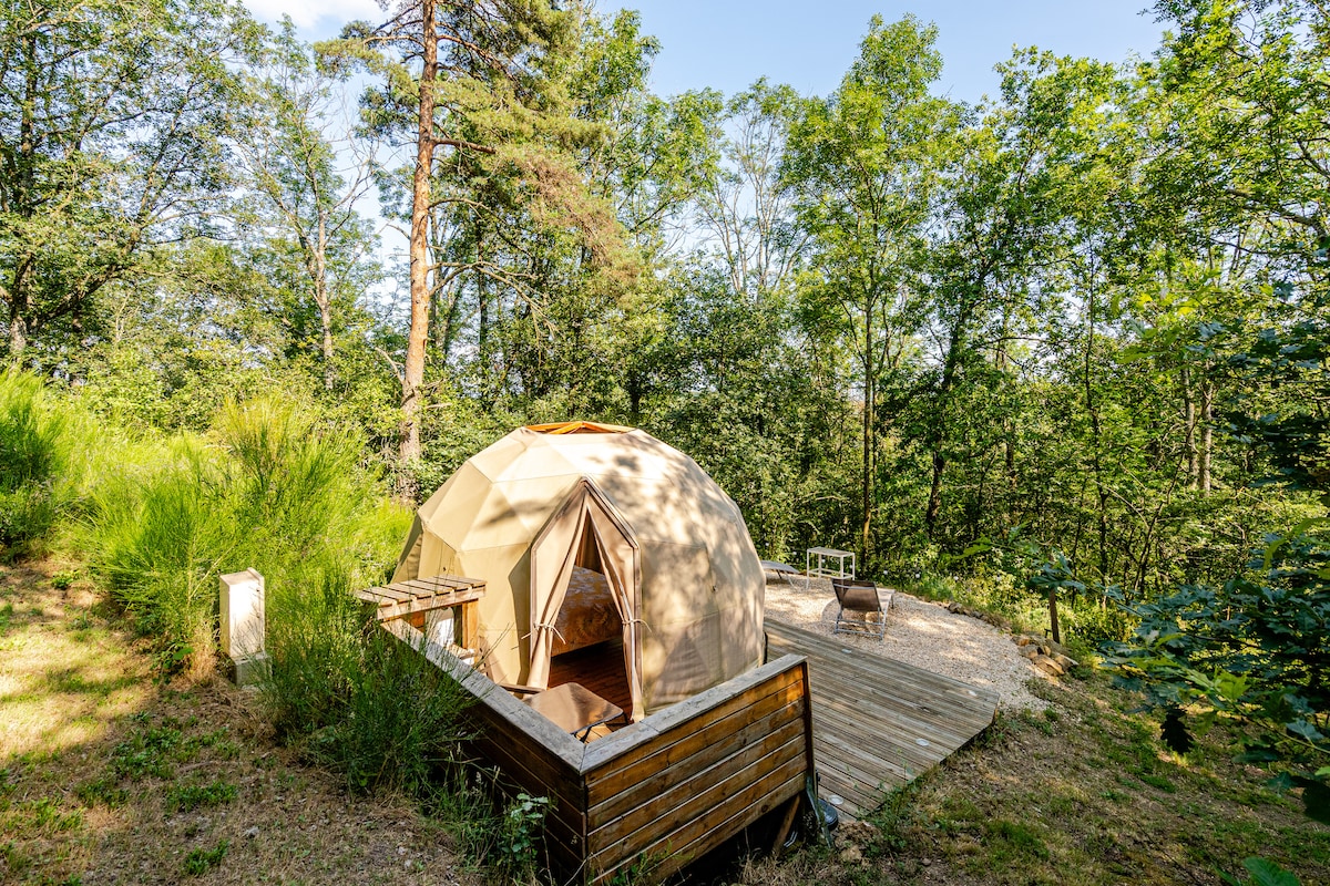 Con una ubicación ideal a menos de 20 km de Lyon y a 5 minutos de la A89 (París, Burdeos, Marsella, etc.), disfrute de una noche en plena naturaleza en el «pulmón verde» de la zona de Lyon. Durante el día, disfrute de las rutas de senderismo, bicicleta de montaña o senderos accesibles a unos cientos de metros de la cúpula. Y por la noche, cómodamente instalado, disfruta de la fauna y la flora que te rodea. Posibilidad de reservar el desayuno por un suplemento (contáctenos)