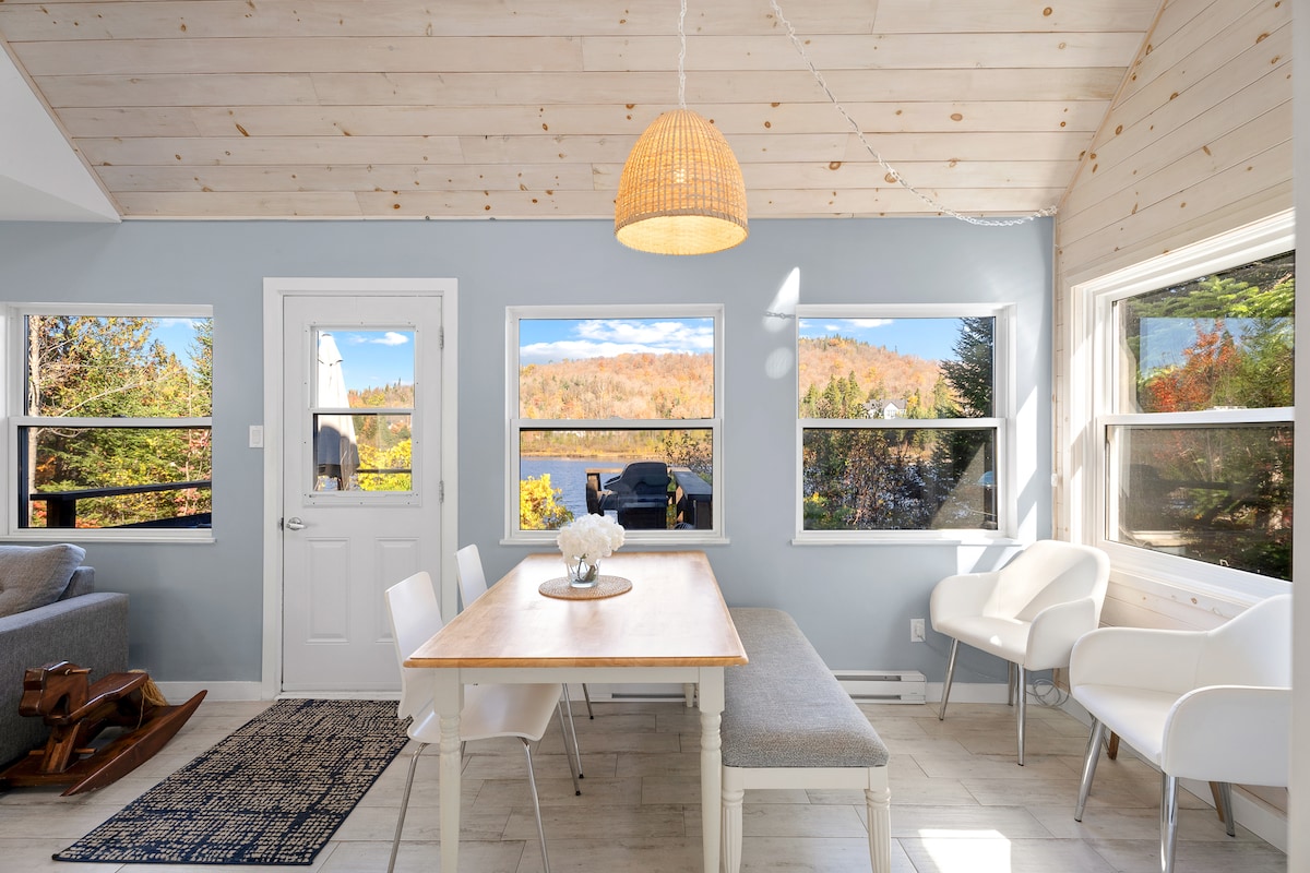 Chalet rústico con magníficas vistas al lago Sarrazin y bajada directa al lago. Cocina completa, TV por cable, internet wi-fi, chimenea de leña, bañera de hidromasaje doble, balcón con barbacoa, hidropedales y kayaks (temporada de verano), estacionamiento directo. Lugar apacible y encantador. Ideal para desconectar de la vida diaria y rutinaria A solo 10 minutos de todos los servicios necesarios. Senderismo, ciclismo, raquetas de nieve, esquí de fondo y varias montañas de esquí cerca.