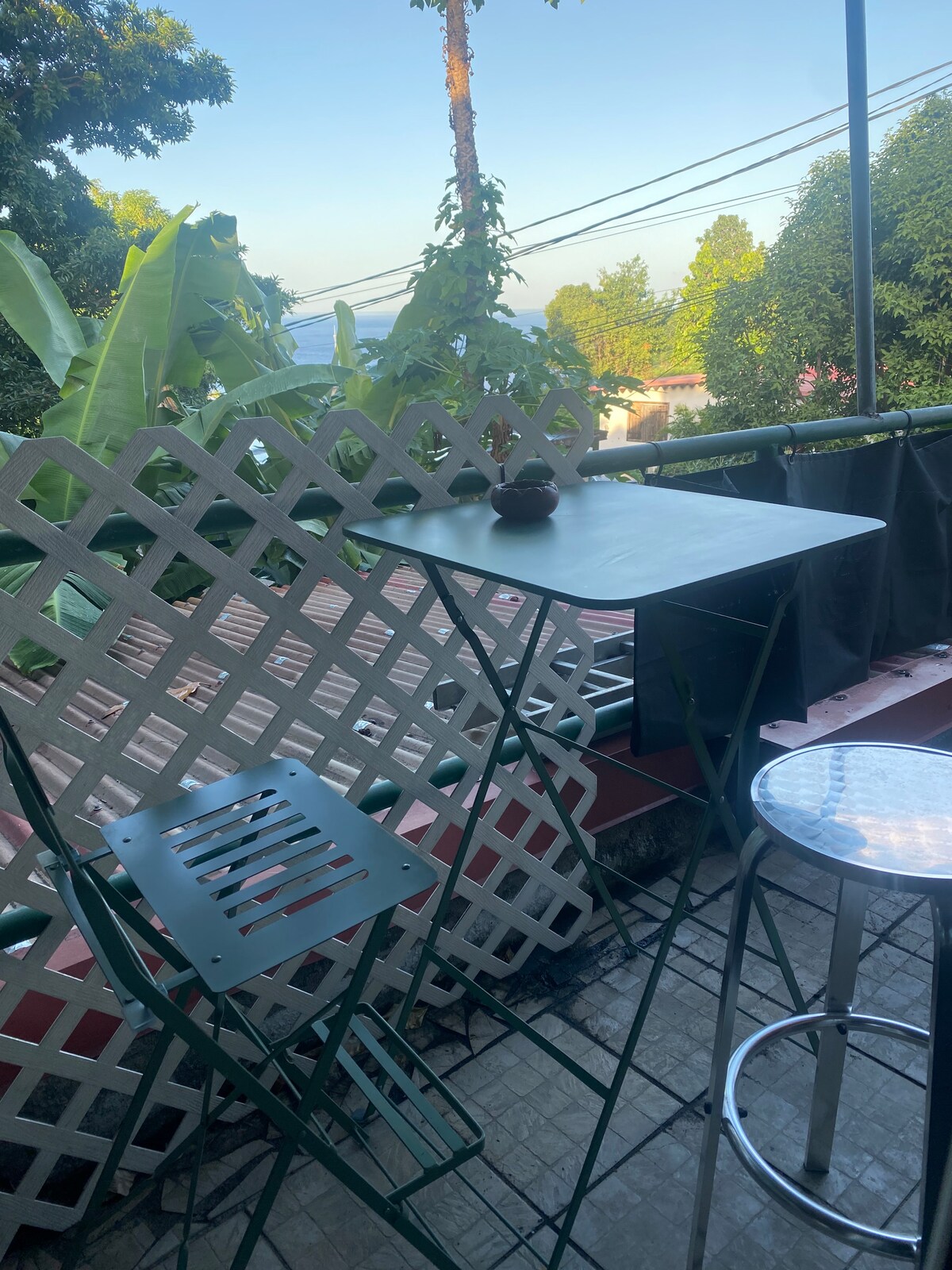 Un remanso de paz que combina naturaleza, confort y serenidad. La ubicación en el corazón de la isla permite descubrir con facilidad las muchas facetas de Guadalupe. El bungalow se beneficia de una buena ventilación debido a la brisa permanente de los alisios y la proximidad del bosque de Sarcelle. Unas vistas impresionantes del mar desde la terraza, colibríes encantadores, un «spa» hirviendo... el tiempo se detiene, el tiempo de una estancia inolvidable.