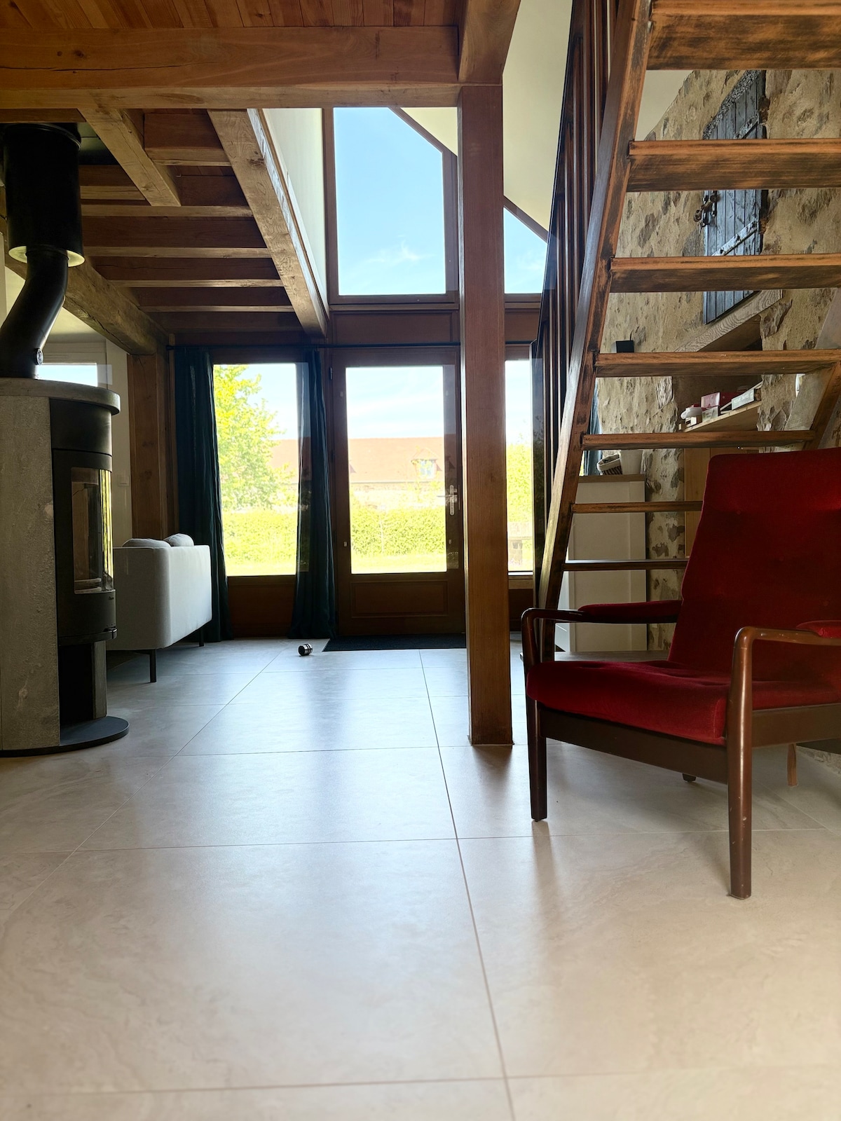 Este alojamiento muestra un estilo decididamente único. ¡Es como en la película «Habitación con vistas», pero en Sainte-Suzanne! Se duerme ante el paisaje de Coëvrons bañado por los colores de la puesta de sol y se despierta con el sol. ¡Luego desayunas en la terraza con esta decoración sublime!
