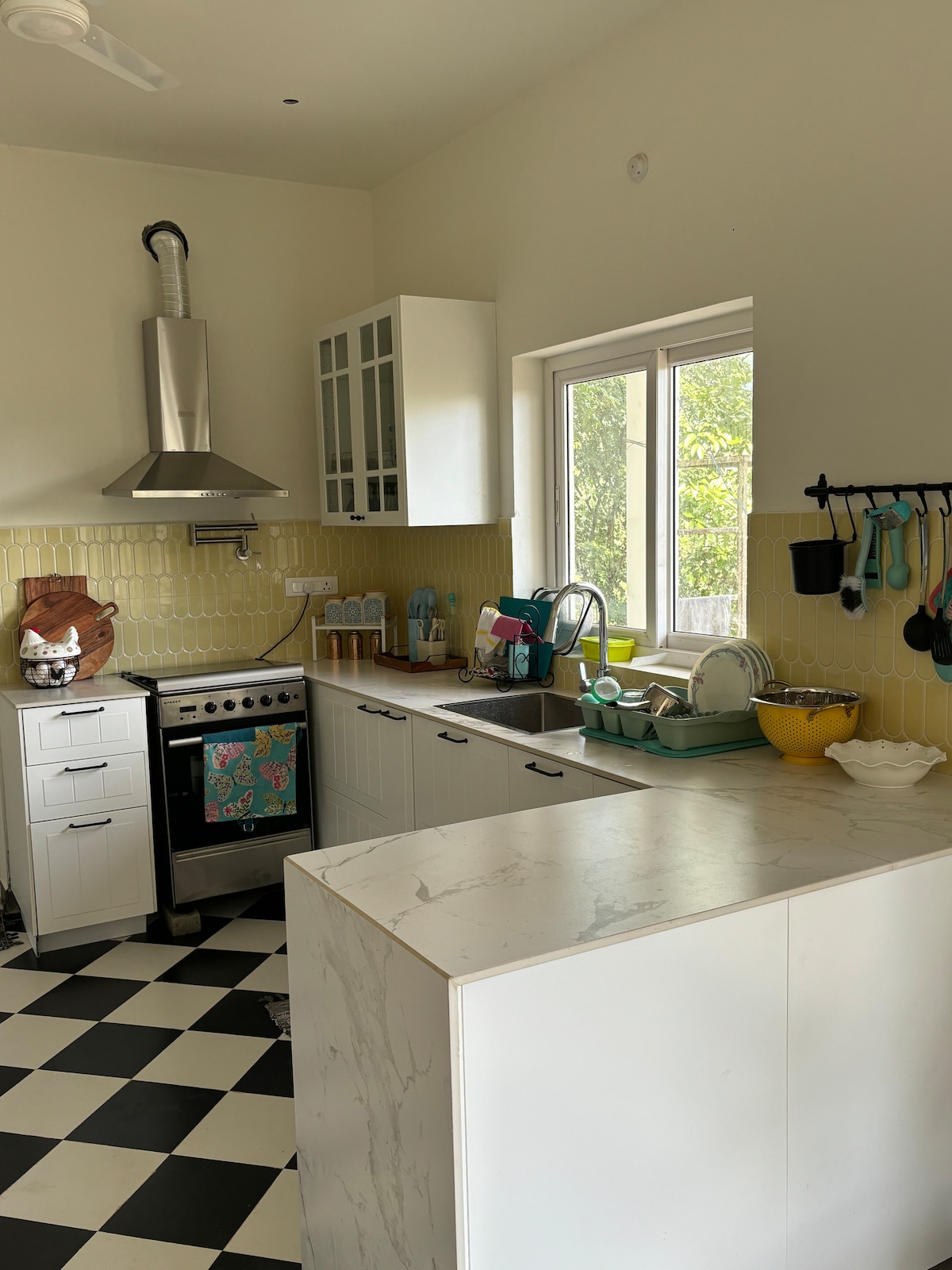 Escape to our serene retreat featuring 5 tastefully designed rooms, each with its own private sit-out. Gather with family & friends in our cozy lounge, perfect for conversations, games, or simply unwinding. Near major sights, yet quietly nestled in nature for a relaxing, stress-free stay. Enjoy seamless WiFi & 24/7 power backup. Entire property is given to one group at a time; rooms provided based on 2 guests per room. Make your evenings special with BBQ and bonfire experiences (extra charge).