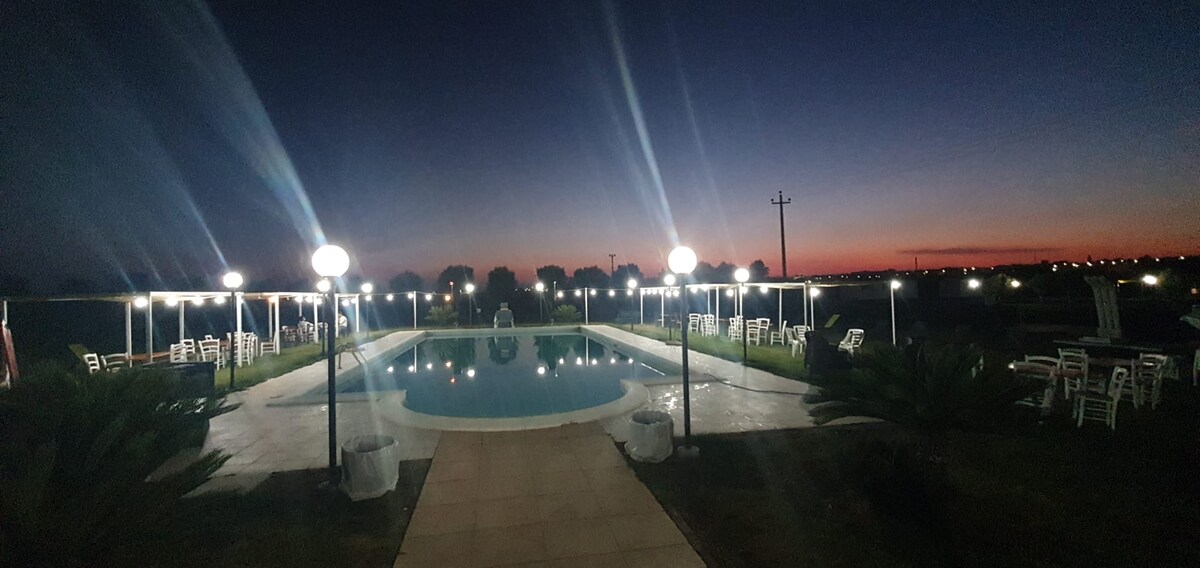 splendido bungalow in agriturismo a due passi dalle spiagge caraibiche dell' alto Salento.Forniamo una ristorazione in mezza pensione di prodotti tipici pugliesi a km zero ci sono piscina per adulti e piscina per bimbi ed una splendida pineta in cui rilassarvi