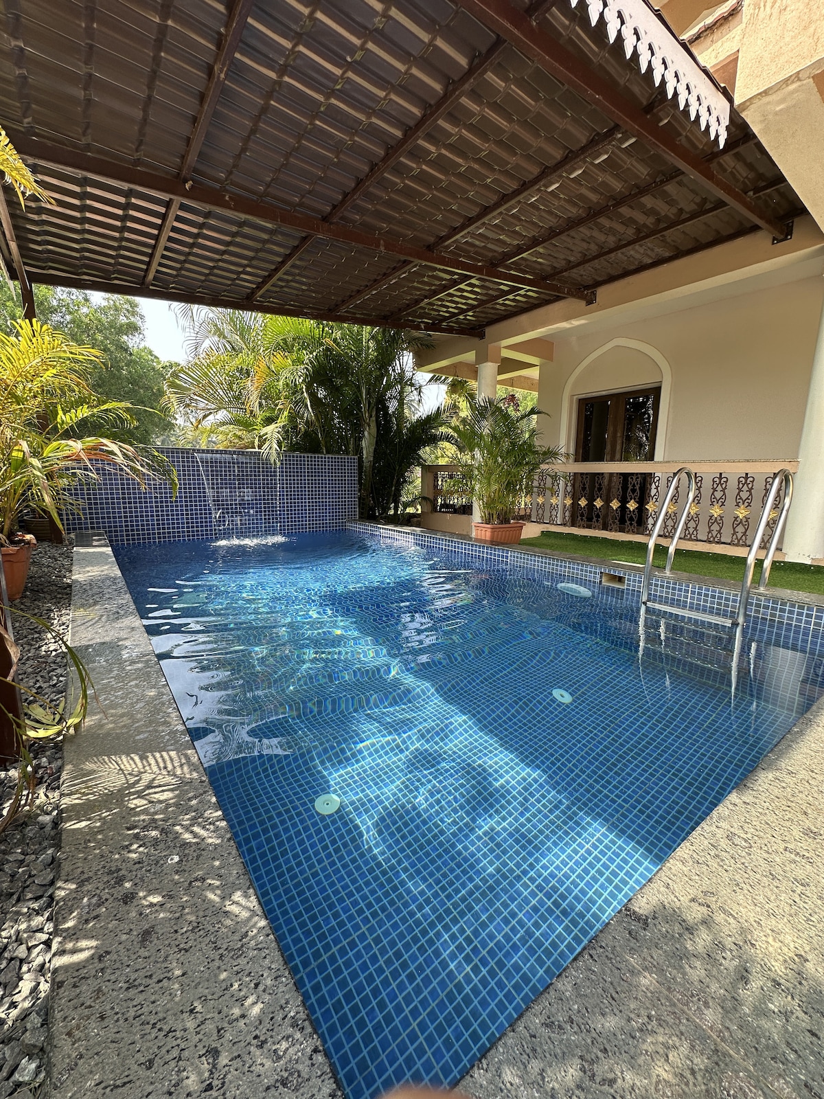 Bienvenido a VILLA ANANYA, una casa portuguesa bellamente restaurada de 150 años ubicada en el tranquilo pueblo de Saligao, al norte de Goa. Esta villa patrimonio de 4 dormitorios ofrece una mezcla de encanto del viejo mundo y comodidad moderna, con piscina privada, exuberantes jardines, salón al aire libre y arquitectura tradicional de Goa. Situada en el corazón del norte de Goa, la villa está equidistante de las playas populares. Ya sea que estés aquí para relajarte o explorar, Villa Ananya ofrece una estancia tranquila pero bien conectada.