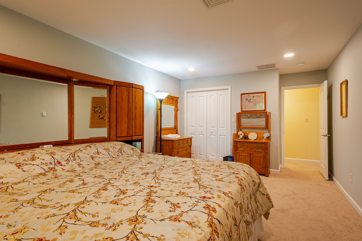 Trae a toda la familia a mi espaciosa casa. 3 baños para que todos se preparen. 2 camas tamaño king y 2 camas tamaño queen en 4 dormitorios. Enorme sala de estar, cocina y comedor. Disfruta de un solárium y un patio trasero vallado. Huevos frescos de gallinas del patio trasero. Merry Maids limpia regularmente los baños y la cocina. El sótano, el garaje y el cobertizo son para almacenamiento y no forman parte del alquiler. Aunque es tranquilo a las afueras de la ciudad, puede haber algo de ruido de la autopista o ruido de animales de granja. Amplia entrada para vehículos.