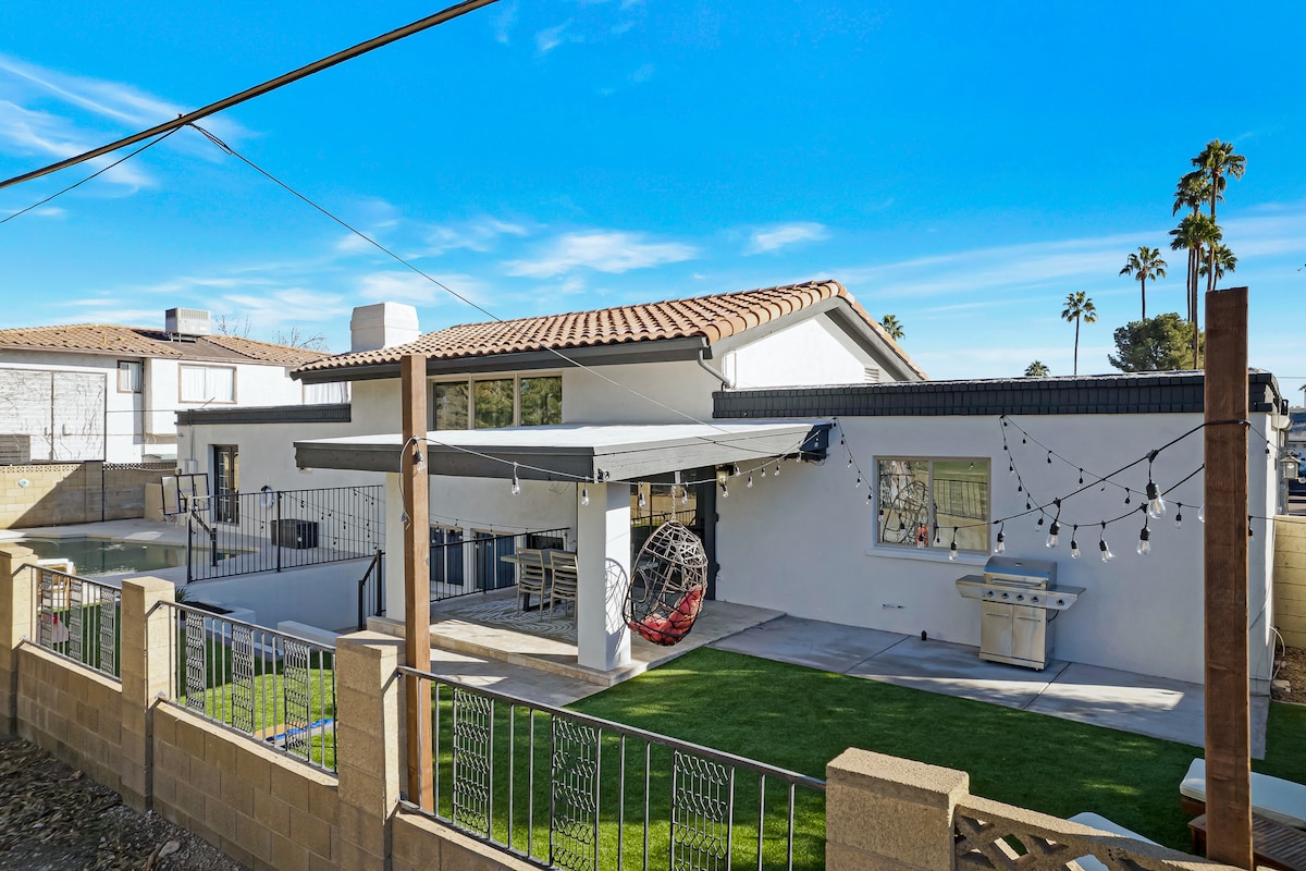 Bienvenido a tu mejor alquiler vacacional en Scottsdale. Esta impresionante propiedad ofrece un increíble patio trasero, creando un verdadero oasis para que disfrutes. Sal y descubrirás un refugio bellamente ajardinado con un patio cubierto, que ofrece amplios asientos para disfrutar del espléndido clima de Arizona. La cocina al aire libre es lo más destacado, equipada con una parrilla incorporada, fumador Big Green Egg, fregadero y refrigerador; asegurándose de cocinar y entretenerse sin esfuerzo para ti y tus huéspedes.