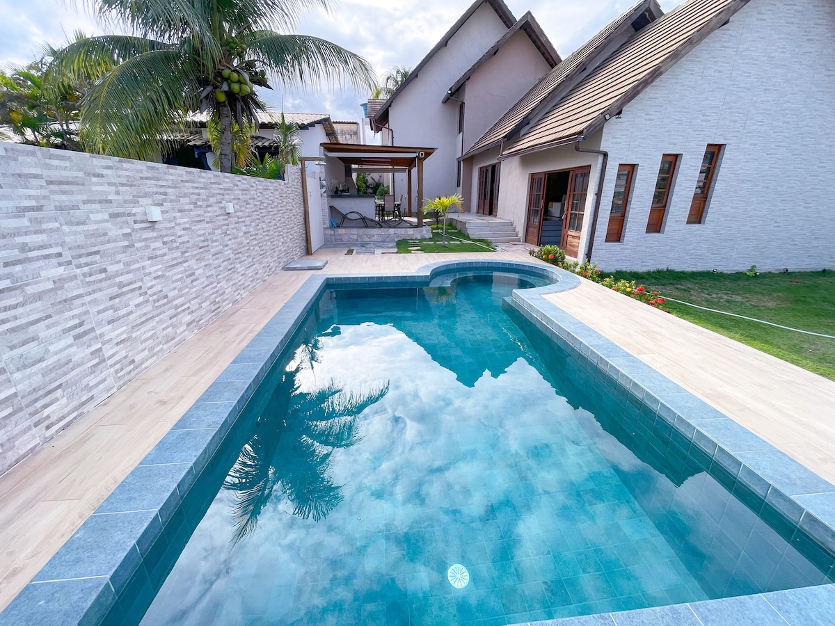 Una casa tradicional de estilo europeo en el exclusivo condominio Canto do Sol, en Barra do Jacuipe/Guarajuba - BA. Con cuatro suites, la casa ofrece comodidad, elegancia y mucho espacio para reunir a familiares y amigos con total privacidad. El condominio tiene acceso exclusivo a la playa, gimnasio, canchas deportivas, terraza de la laguna y parque infantil. La casa tiene una zona gourmet con parrilla, cocina totalmente equipada, sala de estar integrada, ¡amplio jardín!