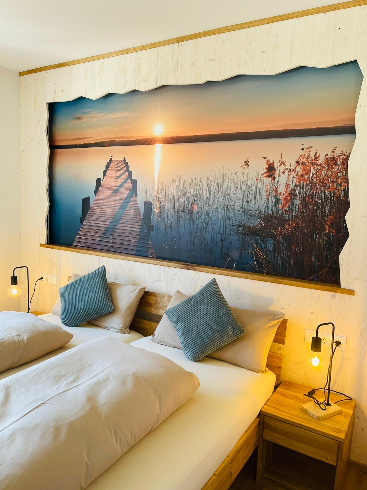 Special Price double room for single use - stylish, modern room with double bed & shower/WC, TV. Desk & fast internet / WiFi up to 100 Mbit. Fluffy towels, power hairdryer, social toilet paper & soap from Allgäuer Werkstätten.