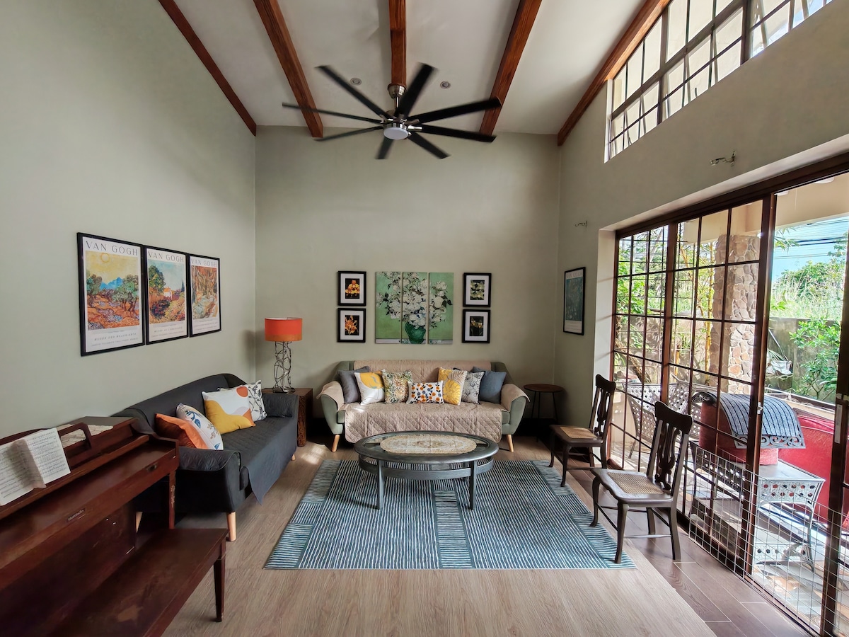 Casa relajada y acogedora con vistas al océano y a las montañas. Casa totalmente amueblada Patio relajante con un bonito jardín Uso de piscina y karaoke Wifi gratuito