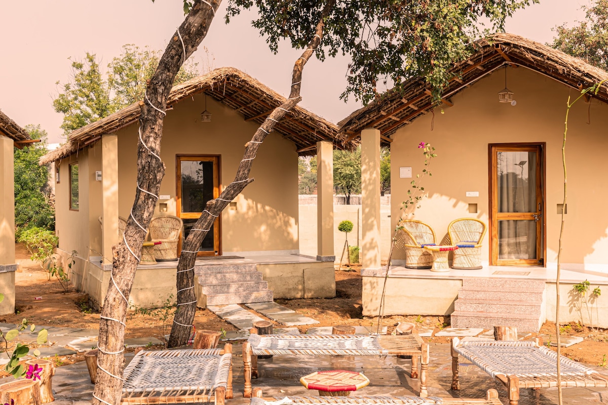 ✨ About the Stay Escape into nature with this eco-friendly rustic cabin, surrounded by greenery. Perfect for couples, solo travelers, and small group who want to relax, work remotely, or simply enjoy the peace of countryside living. Wake up to birdsong, sip your morning tea and watch sunset with bonfire under stars. Just 20 minutes from Jaipur city. 🛏 What You’ll Love •Wood cabin with AC & bathroom •Work-friendly area • Bonfire,tree hut corner for evenings •Pushkar trips also organise.