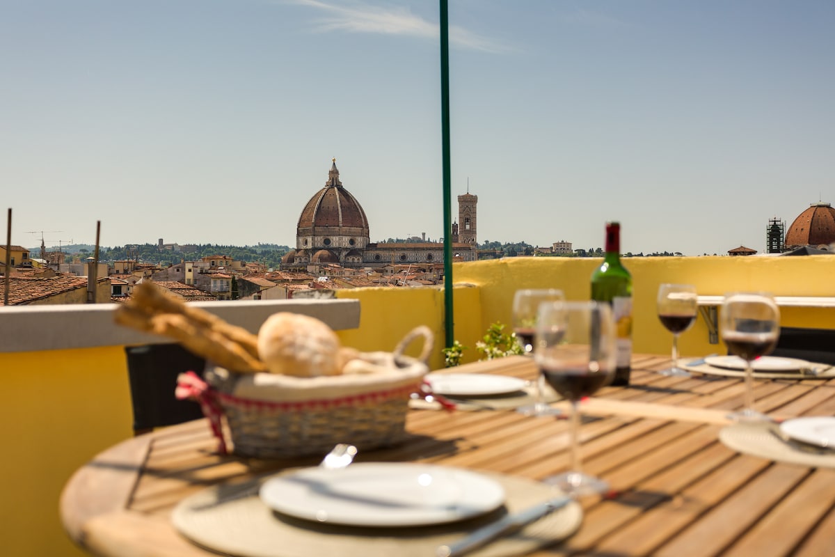 El apartamento está ubicado en la planta superior de un antiguo edificio florentino, a 900 metros de la estación central de tren de Santa Maria Novella y a solo 150 metros de la característica Piazza San Marco llena de clubes ,bares y restaurantes típicos. Recientemente renovado y amueblado, el apartamento tiene una gran terraza con una vista increíble del centro histórico, un dormitorio doble con vistas al Duomo, un dormitorio individual, un sofá cama doble en la segunda sala de estar y dos baños.