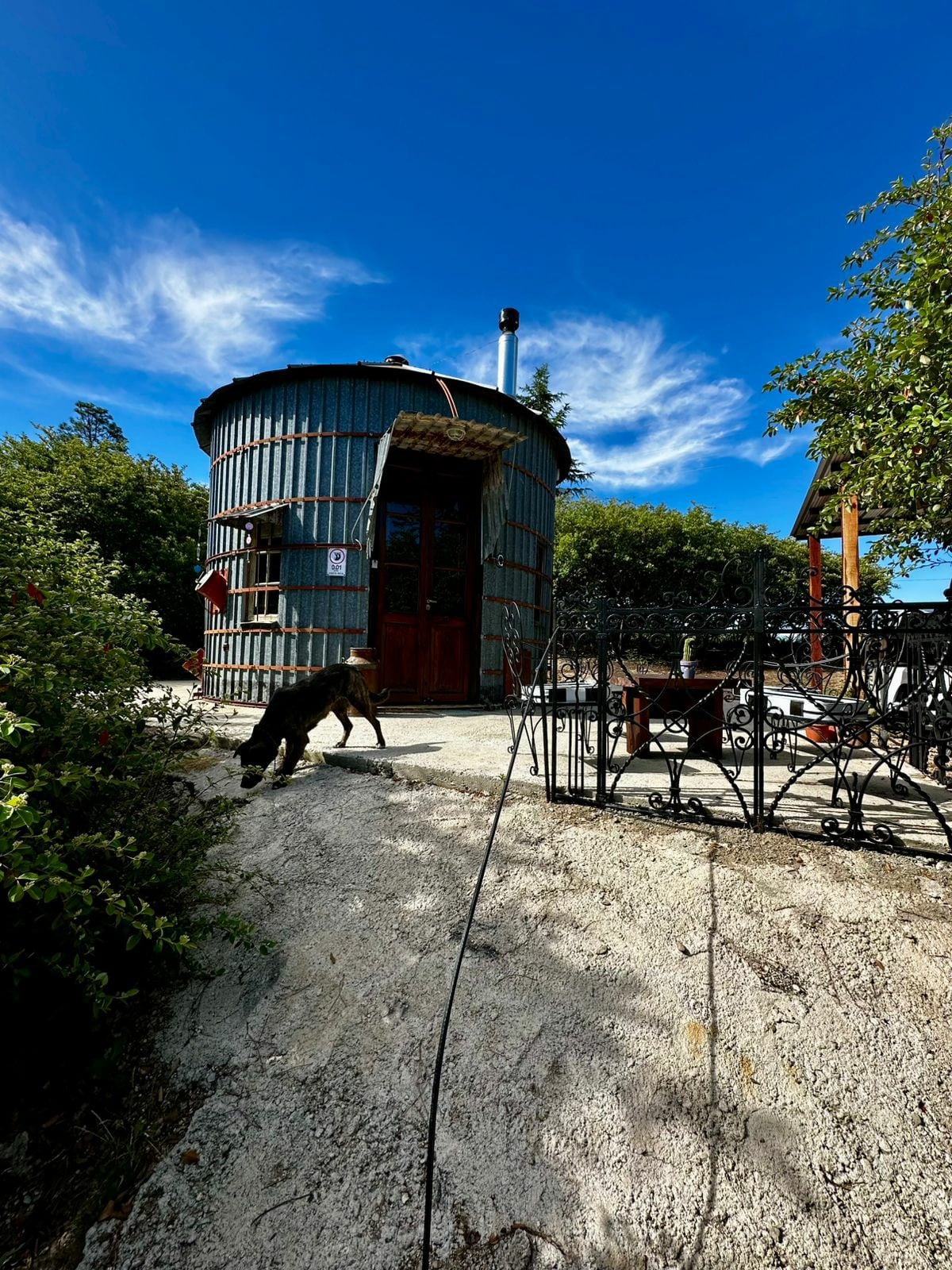 Baño, agua caliente, cocina, cochera, parrilla, WiFi. Un silo de 5.5 de altura, con seleccionadas aberturas antiguas, un micro estanque con playita, un túnel solar en el techo. No es una casa. Te vas a alojar en un silo a 1400msnm. Tenemos perros, gatos, patos, gallos, cabra y gallinas. Ninguno hace daño. TIENE WIFI. DESAYUNO casero y FRESCO INCLUIDO. CADA MAÑANA EN LA TRANQUERA entre 830 y 9am. ESTÁ MUY AISLADO, tambien del calor. Estufa a leña. Ventilador (mejor la brisa con ventanas abiertas)