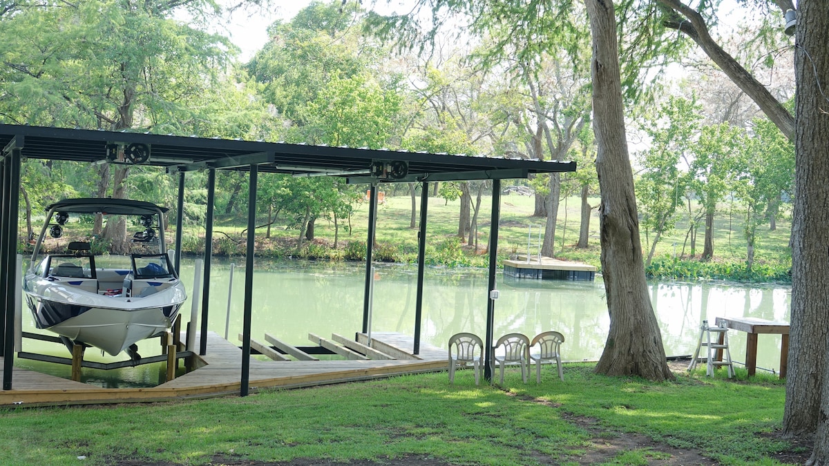 La cabaña Quiet Lake está escondida bajo imponentes cipreses y nogales a lo largo de las orillas del lago McQueeney/río Guadalupe. El encanto original de esta casa de campo de 100 años se complementa con las comodidades contemporáneas y los toques de diseño. Disfruta de este oasis de paz para un viaje de chicas, un fin de semana romántico o unas vacaciones en familia. Pasa el día nadando, flotando o haciendo kayak y termina con s'mores o vino alrededor del fogón de gas. * A SOLO 9 millas de Gruene, Schlitter Bahn y New Braunfels.