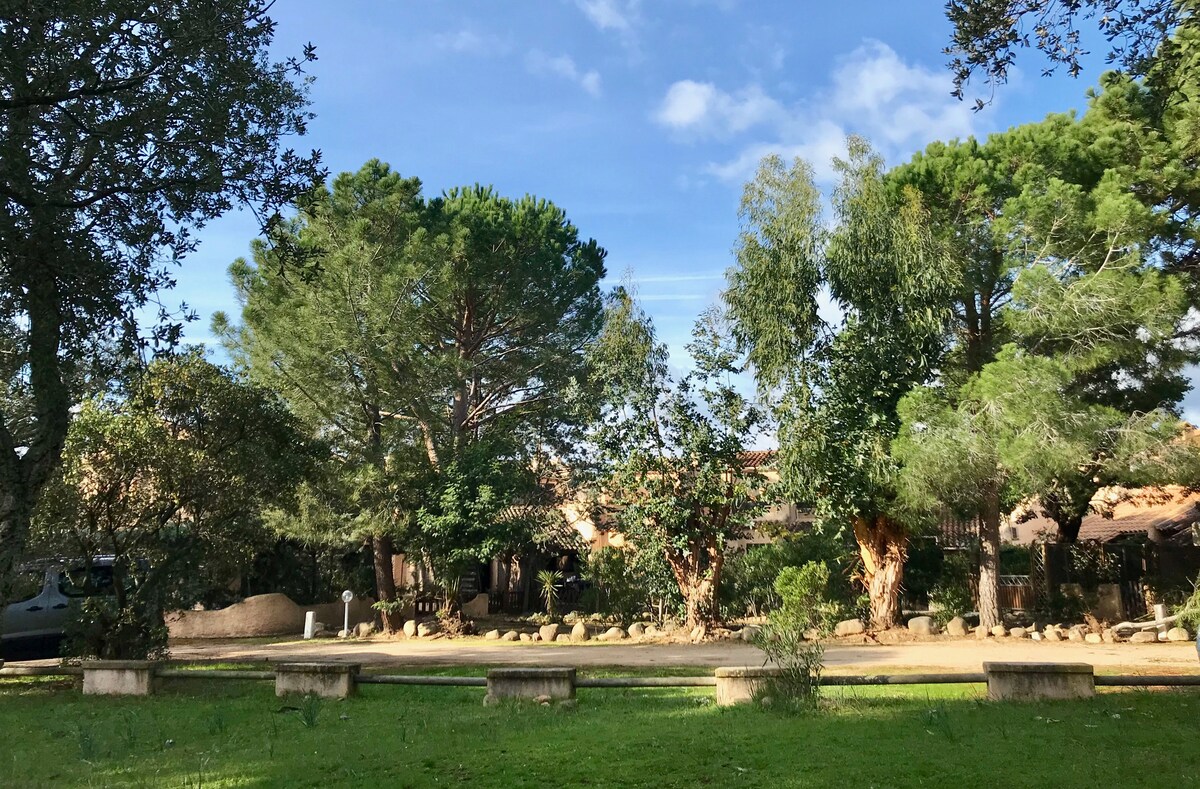 Nuestra mini villa se encuentra en una residencia privada vallada, tranquila y familiar a 200 metros de la magnífica playa de San Ciprianu. Está cerca de todas las comodidades a pie: En 5 minutos tendrá acceso a todos los comercios: Café, Bar, varios Restaurantes, Tienda de comestibles, Casa de la Prensa, Carnicero, Panadero, Tienda de ropa, etc. Al otro lado, accederá en 5 minutos a las playas acondicionadas Le Tiki y el VIP Beach El aeropuerto de Figari se encuentra a 35 km y Porto Vecchio a 7 km