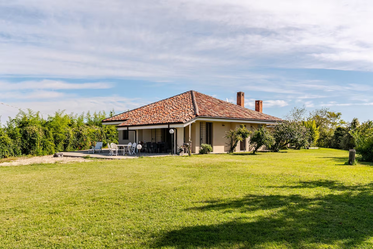 Villa esclusiva e indipendente tra le colline del Monferrato, perfetta per gruppi, famiglie e piccoli ritiri. 4 camere con bagno, salone doppio con camino e Netflix, cucina attrezzata, 10.000 m² di giardino privato con vista a 360°, patio, barbecue, solarium. Nessun vicino. Solo spazio, silenzio e libertà.