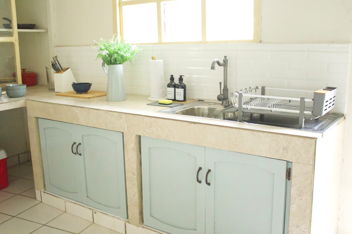 located in a gated community. ID requires to provide proper permission. This space is a tiny bohemian home that is only five minutes away from the city! It’s the perfect space for four guests, but can fit five if need be with the sofa bed offered in the living room. The home is located in a gated community with a basketball court, park, and a community pool. Everything you might need in your stay! And don’t forget the beautiful volcano view offered right in the backyard of the home!