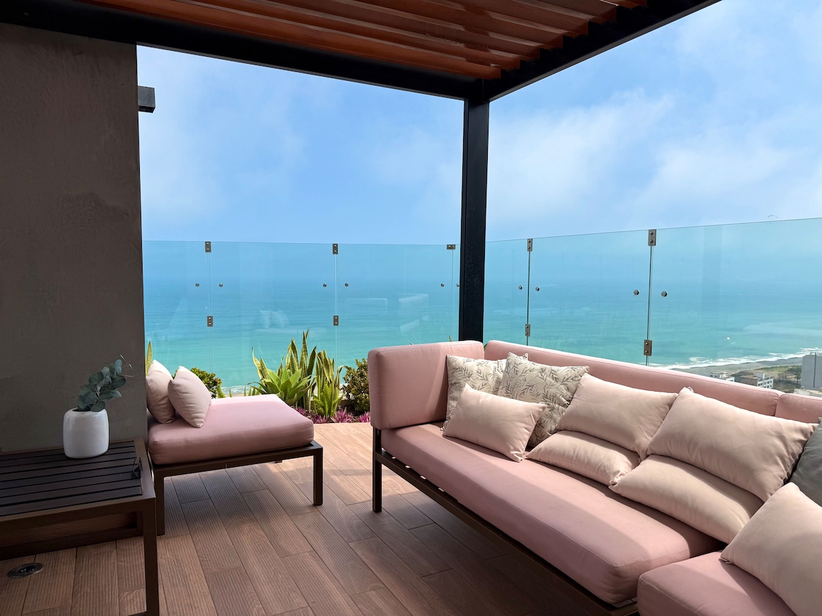 Disfruta de una experiencia con estilo en este alojamiento céntrico, donde podrás disfrutar de la piscina con borde infinito (previa reserva y máx 2 personas por día) y deleitarte con una vista de toda la ciudad y el mar. Y si tienes cosas laborales que atender puedes realizarlo en las oficinas Coworking que están a tu disposición, además nuestros huéspedes tienen acceso a la zona de gimnasio durante su estancia, para que puedan mantenerse activos y disfrutar de un estilo de vida saludable.