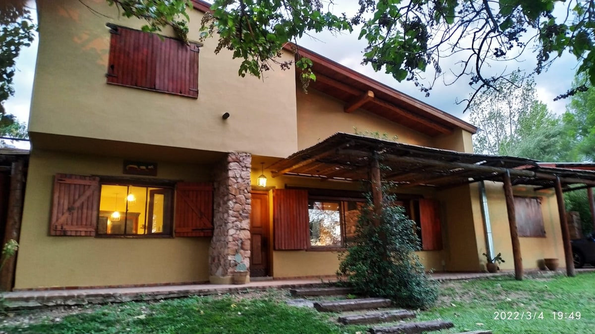 Casa en Barrio Privado Chacras de San Javier en medio de las Sierras, a 3 km del Pueblo San Javier y Yacanto. Ideal para familias y/o amigos. Tiene 2 habitaciones, 1 con sommier king size. La otra con 2 camas sommier. 2 baños, uno completo con ducha y el otro toilet. Living comedor amplio. Cocina totalmente equipada con cocina a gas, heladera con freezer y utensillos de cocina. Con amplio parque, quincho, pileta privada y estacionamiento techado. Wi-fi con antena Starlink.