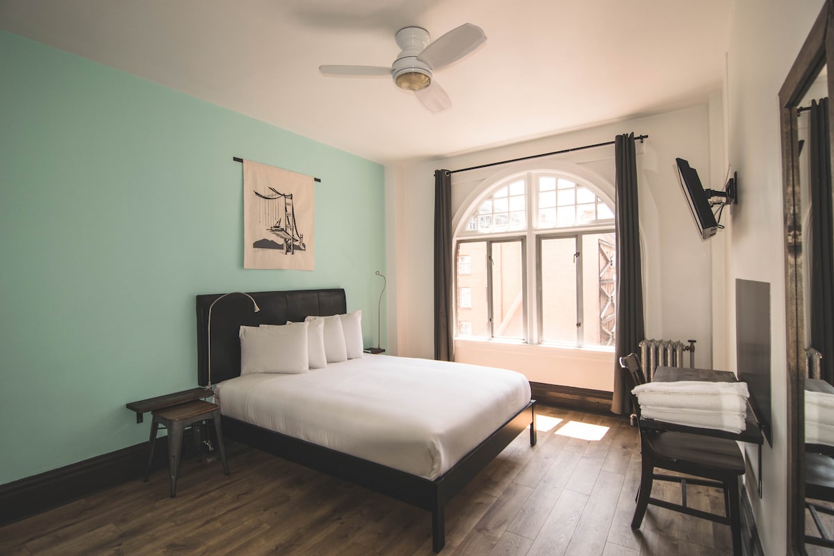 Habitación privada con cama queen en un hotel boutique en Palo Alto