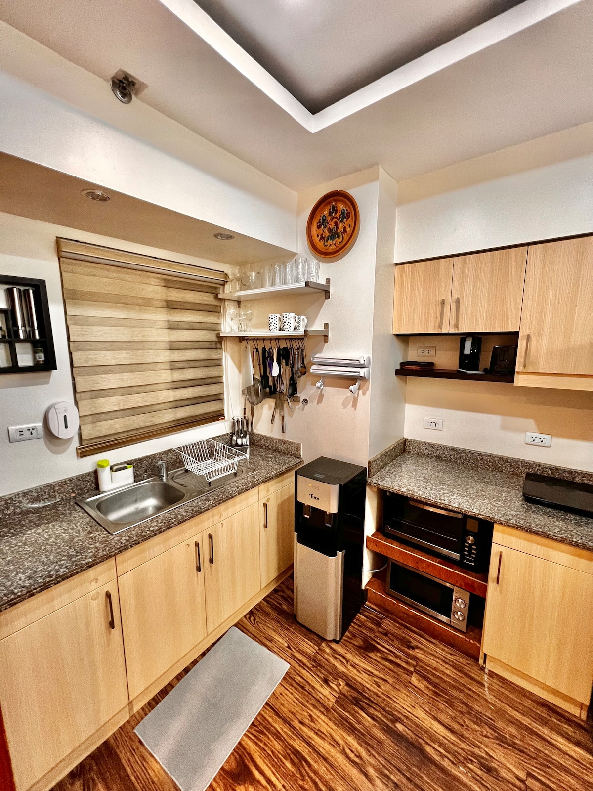 Escápate a una suite de piso alto con impresionantes vistas al horizonte de BGC, sonido envolvente cinematográfico JBL y un televisor inteligente 4K completo de 55 pulgadas con iluminación ambiental LED: tu mejor refugio nocturno de cine. Disfruta del paisaje con binoculares de alta calidad y luego sumérgete en la cama Cloud-Bed Emma® para una noche de sueño perfecto. Lejos del ruido de la ciudad, pero cerca de todo, ¡disfruta de WiFi rápido, Netflix, Disney+ y más! ¡Verdaderamente un espacio totalmente equipado para una experiencia de escapada perfecta e inolvidable con Cinema 27!