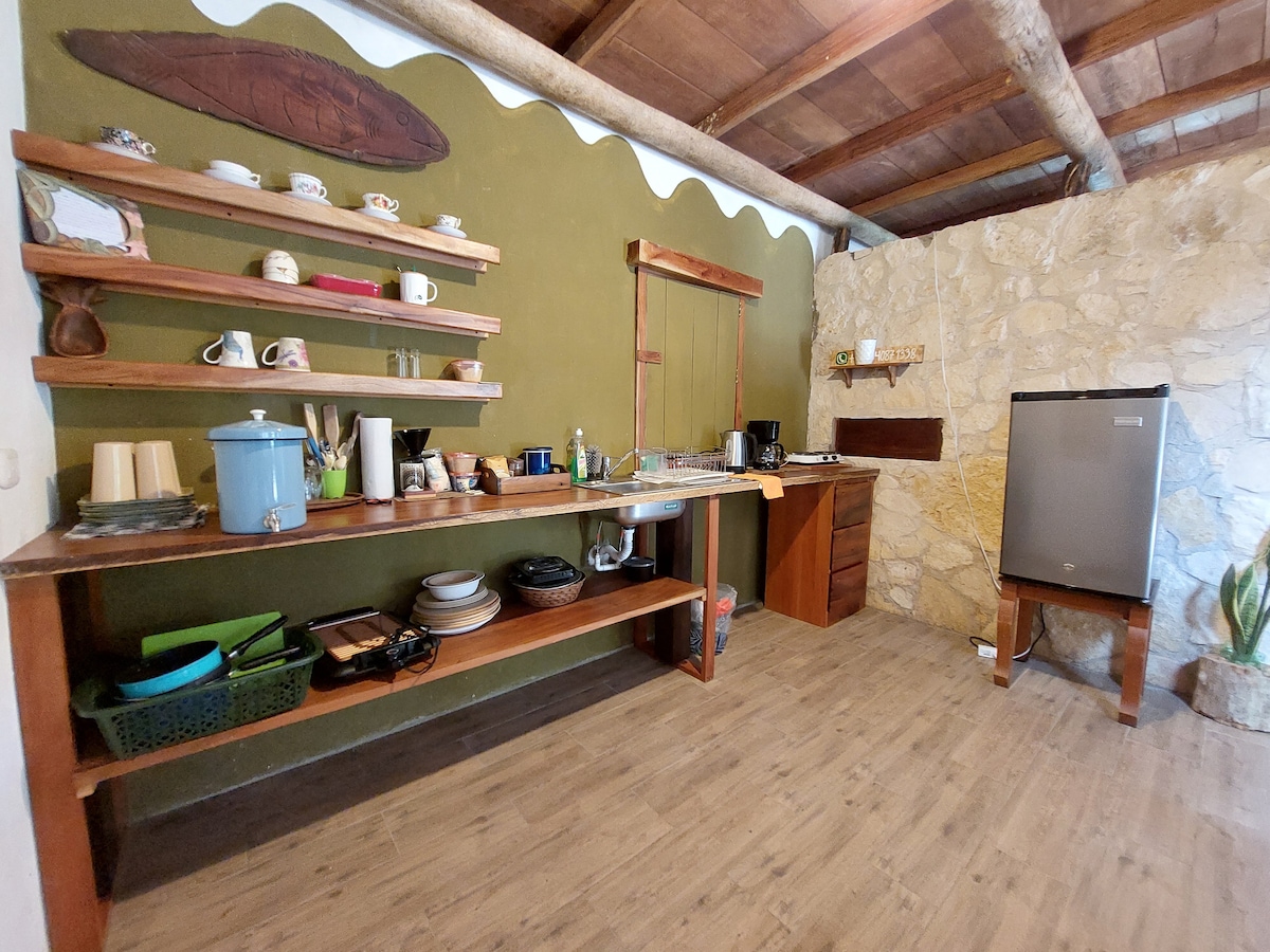 El alojamiento es una casa individual, con dos habitaciones y un área para. cocinar, parqueo propio, servicios básicos, ducha con agua caliente, privacidad y comodidad. En contacto con la naturaleza área para descansar, a cuatro cuadras de las la orillas de lago Petén Itzá, puedes convivir con sus habitantes. San José es un lugar tranquilo y seguro, rico en cultura y tradiciones mayas, desde este lugar puedes ir a otros lugares como Tikal, Yaxha, y visitar el área central de Petén.