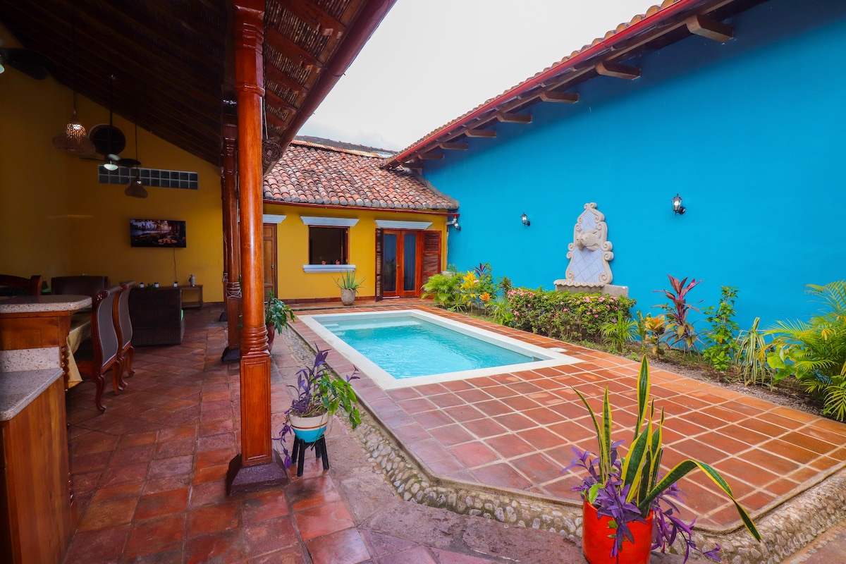 Tu casa privada en el corazón de Granada: piscina exclusiva, total privacidad y seguridad. Dos habitaciones en suite con baño privado, aire acondicionado, cocina equipada, wifi rápido y salón con TV. Piscina solo para ti en un patio colonial lleno de encanto. Incluye una limpieza cada 7 día, según prefieras, y seguridad privada nocturna. Parking a 3 min a pie por solo 10 dólares la noche, o aparcamiento seguro en la misma calle. A un minuto de la plaza central y frente a la Casa Tres Mundos.