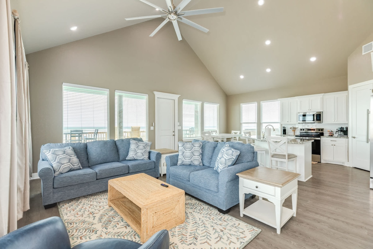 ¡NUEVA construcción frente a la playa! ¡Verdaderamente un unicornio:🦄 UBICACIÓN, LUJO y tan agradable tenerlo NUEVO! ¡Ubicado a pocos pasos de los mejores restaurantes y playa en Surfside! Disfruta de hamacas y juegos debajo de la casa. ¡Sube los escalones hasta una impresionante terraza sombreada con vistas desde San Luis Pass hasta el embarcadero! Vistas despejadas de 180 grados. Dormitorios abiertos a SunDeck y observación de estrellas con 🔥 fogata YouTube Beachfront Luxe para video ¡Tarifa de limpieza de $ 125 y solo $ 75 en total para un máximo de 2 mascotas para toda la estancia!
