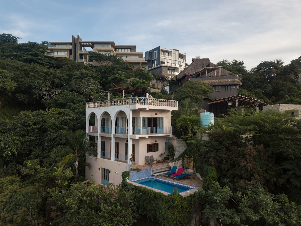 Casa Quetzal ofrece una de las mejores vistas de la ciudad. La casa está escondida en bosques tropicales en las colinas del norte de Sayulita; el Océano Pacífico y una brisa marina constante acompañantes. Se agregó recientemente aire acondicionado Mini Split en cada uno de los dormitorios. La plaza principal de Sayulita está a menos de una milla de distancia y el mar está a unos diez minutos a pie por la colina Nanzal. Caminar o vivir en Nanzal no es para todos; es salvaje, es empinado, es selva, pero si te encanta una vista, Quetzal te espera.