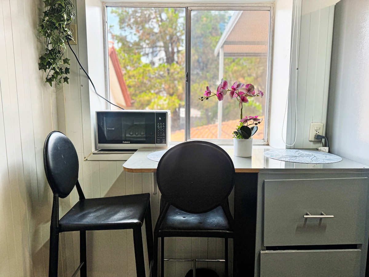 Hermoso, amplio y limpio. Al pie de la montaña, con una vista preciosa, muy fresco, zona muy tranquila y segura. Con una terraza privada donde puedes cenar o tomar una copa, te recomiendo no dejar la puerta de la terraza abierta para evitar que se meta algún animalito ya que están en su habitad.