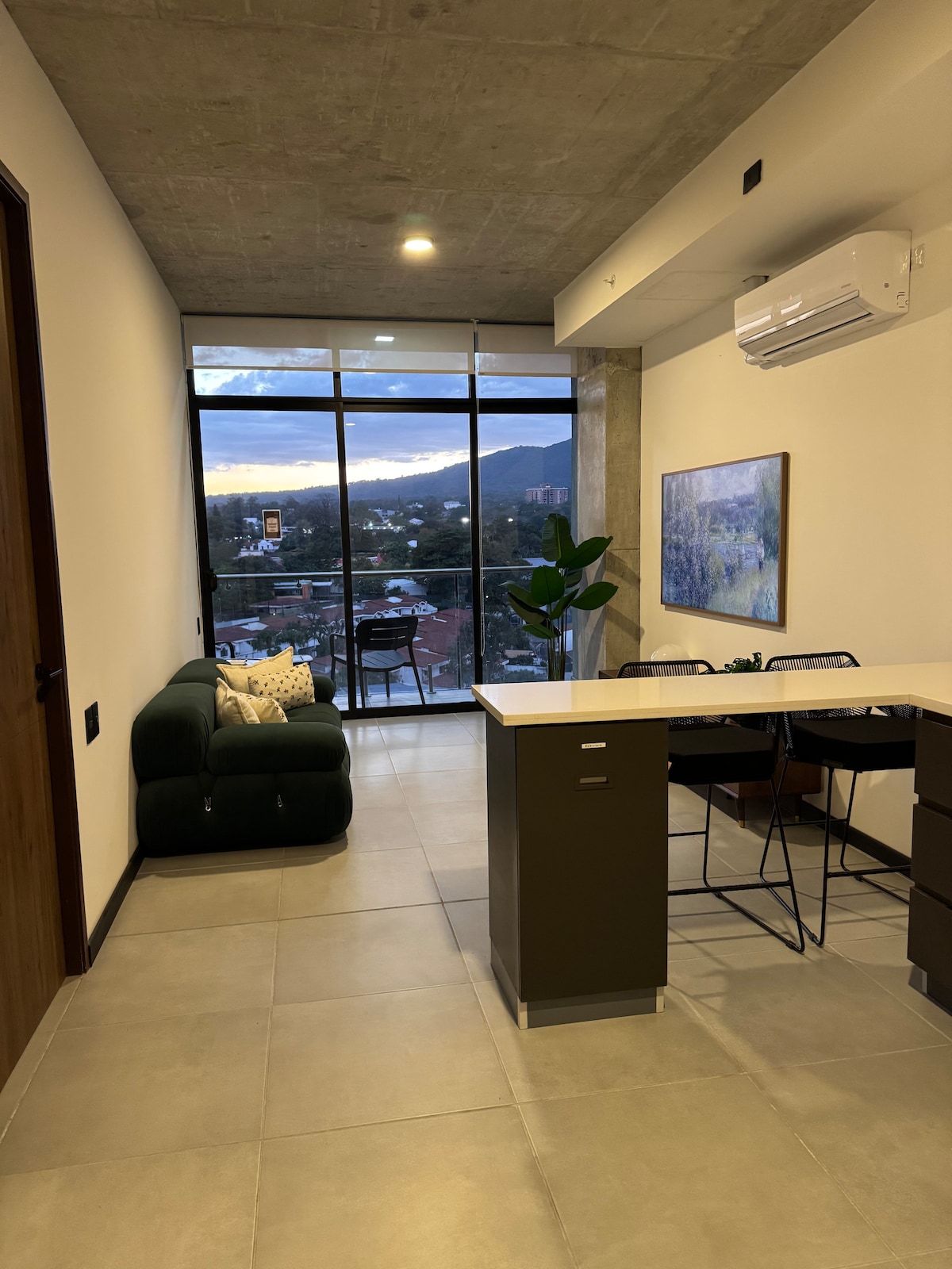 ✨ AIRE ACONDICIONADO EN SALA ✨ Disfruta de una estancia cómoda en una torre nueva y privada, con todas las comodidades modernas. El apartamento es amplio y luminoso, con un diseño que te hará sentir como en casa. Desde el balcón, podrás disfrutar una vista espectacular de la ciudad de San Salvador y del volcán, especialmente al atardecer. Ubicado en una zona exclusiva y segura, el espacio cuenta con un sistema de iluminación moderno, perfecto para relajarte y disfrutar tu estadía.