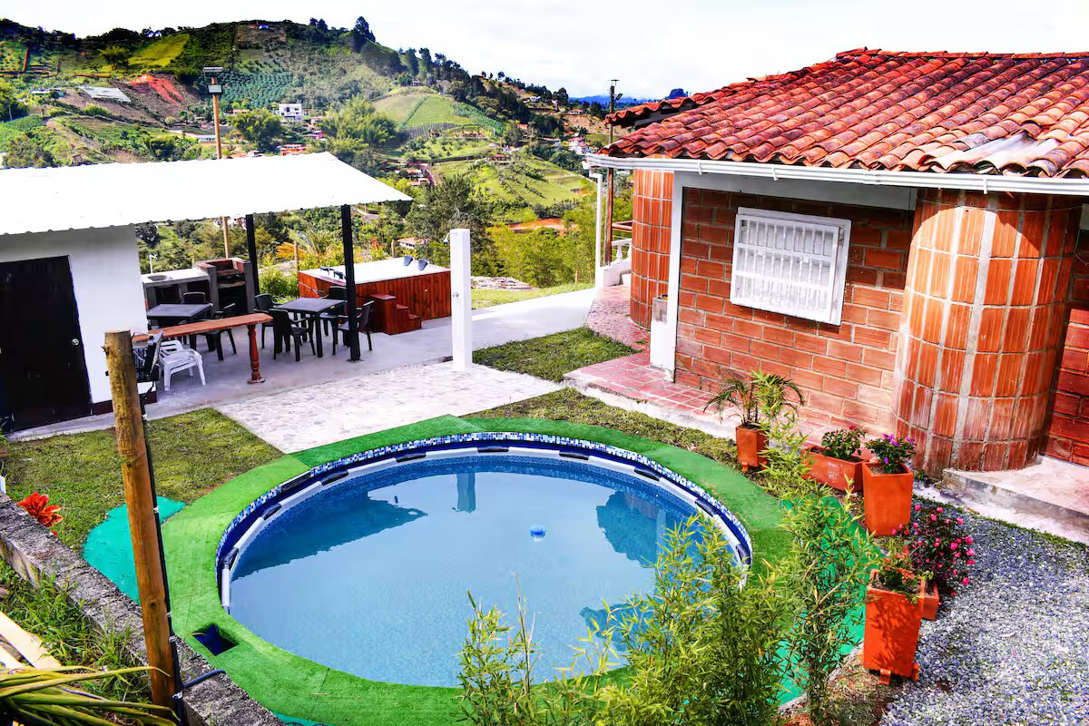 Socorrito y Álvaro te recibirán en su casa campestre, cerca de San Vicente, Antioquia. La casa ofrece una vista espectacular de las montañas y un ambiente tranquilo rodeado de jardines y árboles frutales. Totalmente equipada, ideal para familias, amigos o nómadas digitales que deseen disfrutar la naturaleza con todas las comodidades. Cuenta con parqueadero privado, senderos rurales cercanos y la opción de contratar adicional alimentación y transporte a atractivos turísticos o al aeropuerto.