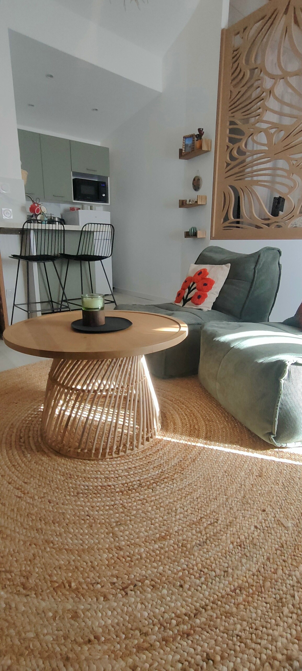 Cambie de aires en este apartamento del centro de la ciudad de Mâcon. Completamente renovado para hacerle viajar a las islas del Pacífico: pared vegetal, huevo suspendido, fregadero de madera… un verdadero nido para relajarse. Tendrá a su entera disposición 60 m2 que incluyen una sala de estar, una zona de lectura, un comedor, un aseo separado, una cocina y una suite principal con su baño de mármol verde. 🔐Llegada autónoma 🍬Extras Se proporciona🛌 ropa de cama y toallas ☕️ Cápsula Nespresso