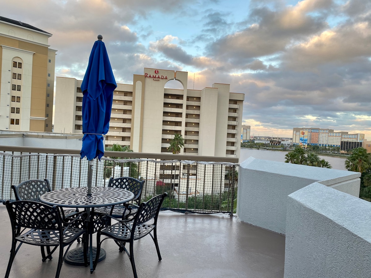 !! GREAT LOCATION !! Elegant, gorgeous 2B2B condo close to everything! PRIVATE 270-degree HUGE terrace with the best views in Orlando! Clear view of Disney fireworks! Both bedrooms have resort-level amenities. The master bedroom features dedicated makeup space and Tempur-Contour memory foam mattress. The living room has a cozy daybed for extra guest or as a coach. All the rooms can see Volcano Bay! Our kitchen provides basic as well as cool amenities: cup washer. Book for family and friends!